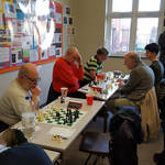 Ian Reynolds on five, having returned to form last season, was first to finish after just over an hour’s play against a former Essex and Wanstead man, Steve Newman, returning to competitive chess. Post match analysis suggested that Ian may well have been winning having had the better of the opening skirmishes. Terry Whitton (a late addition on 11, saving a rare appearance from the skipper) was not far behind, though suffered a rare collapse. David Sands, however, returning to top board deserved his GM draw having reached a level ending after a model opening tactical exchange. On the stroke of 4pm, Sussex established a two-point lead as Larry was unable to survive the loss of the exchange in a typical late arriving Boardman blitzkrieg. Over the next hour, Sussex held their bottom two boards and eliminated the only boards where Essex held the edge on paper.