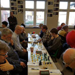 At 5.45 Sussex were well over the finishing line as Ian felll on 13 and Chris could only draw on 8, leaving an exciting finish on Board 2. Under pressure in the middle game, John had come through to set up a double-edged ending where all results had looked possible for us lesser mortals. Winning the exchange seemed to give John an advantage but with menacing pawns of both players advancing, there were plenty of tactics as both clocks ticked down into the last few minutes. John spotted a perpetual to ensure the draw though post-match analysis suggested there might have been more for both players had the match depended on the outcome.