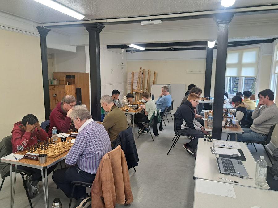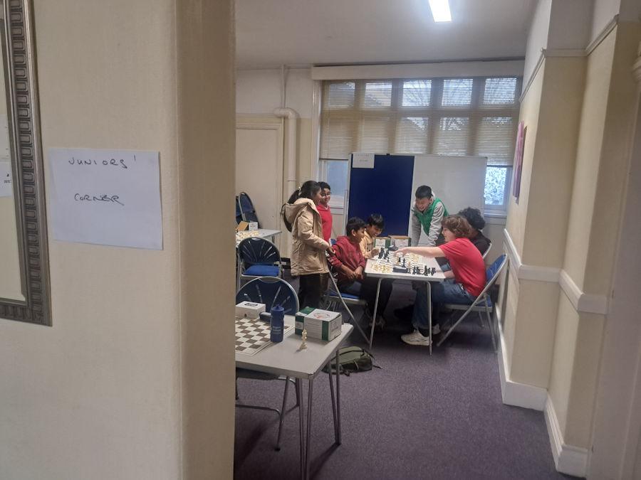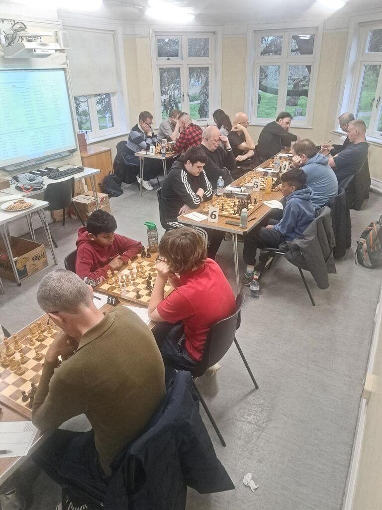 Similar juggling of places over the last two rounds occurred in the Essex Minor Championship (U1900), though this was a much tighter contest so the changes had a less drastic effect. After three rounds three players shared the lead on 2½: Ryan Colclough, Venkatesh Subramanian and Joshua Davis. In Round 4, Ryan defeated Joshua to take the sole lead, while Venkatesh shared the point with Peter Laundy. Scores after 4 Rounds: Ryan 3½, Venkatesh 3.